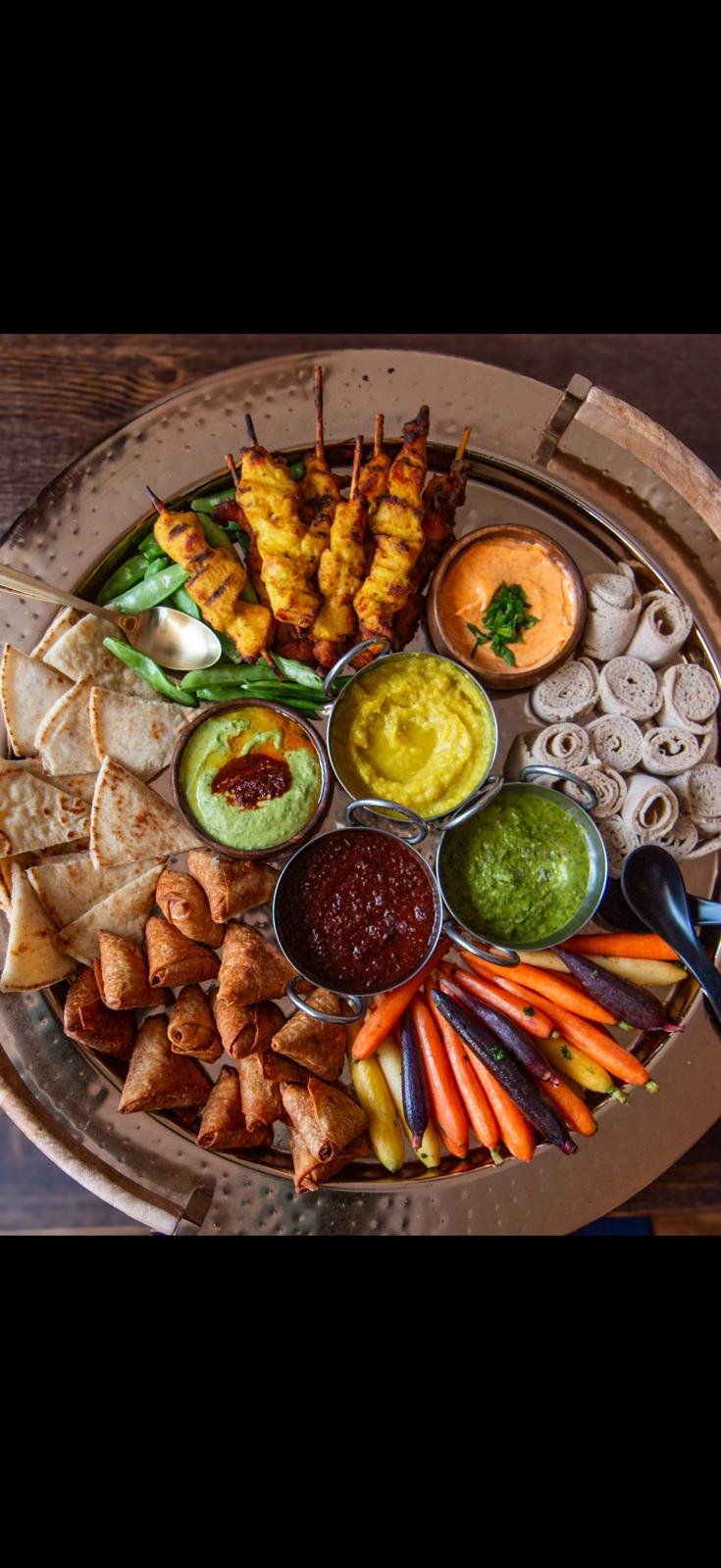 - Garbanzo beans, roasted peppers, tahini, berbere, garlic, evoo, lemon juice and sea salt; served with pita bread